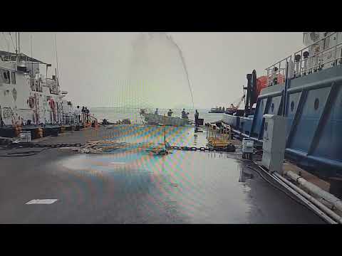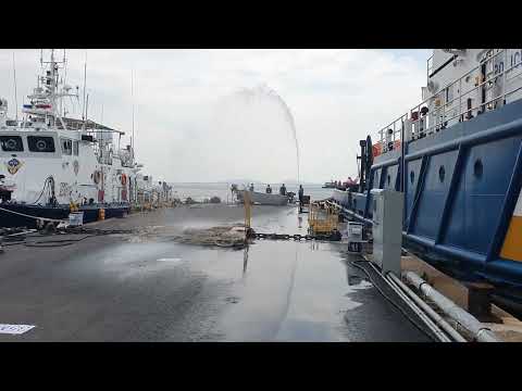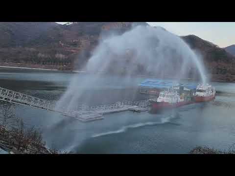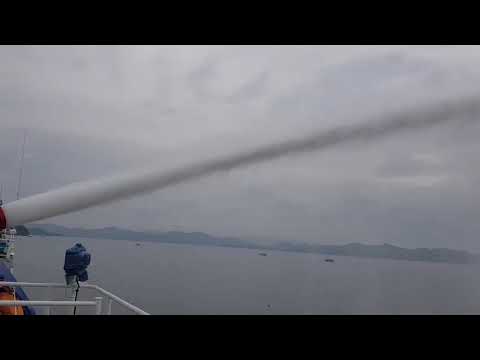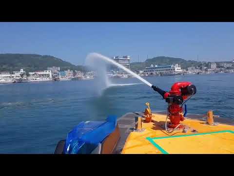 해경(1500톤)소화포 시험 거리150m이상 (약170m) - 1