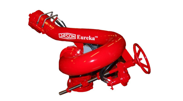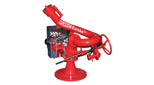 JASON model MM602HJF-F-C-02, is a single flow path marine fire fighting monitor, designed for applications, such as Fire Fighting Vessels, Supply Vessels and Ocean going Tugs. It is electric hydraulic remote controlled and fitted with a fixed capacity Jet/Fog type nozzle. Nozzle control accomplished from the monitor's control panel, which enables adjustment of the jet type from straight stream to fog shape. This special capability makes the remote controlled nozzle a far better tool against fire than more conventional fixed nozzle monitors equipped with a deflector.