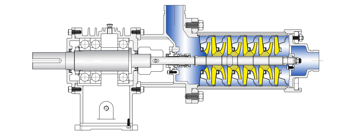 SHC 고온.고압 다단원심펌프는 공냉식 샤프트씰 타입으로 펌프와 씰 챔버를 분리시킴으로써 단열효과가 매우 우수하여 씰 수명이 길다.
