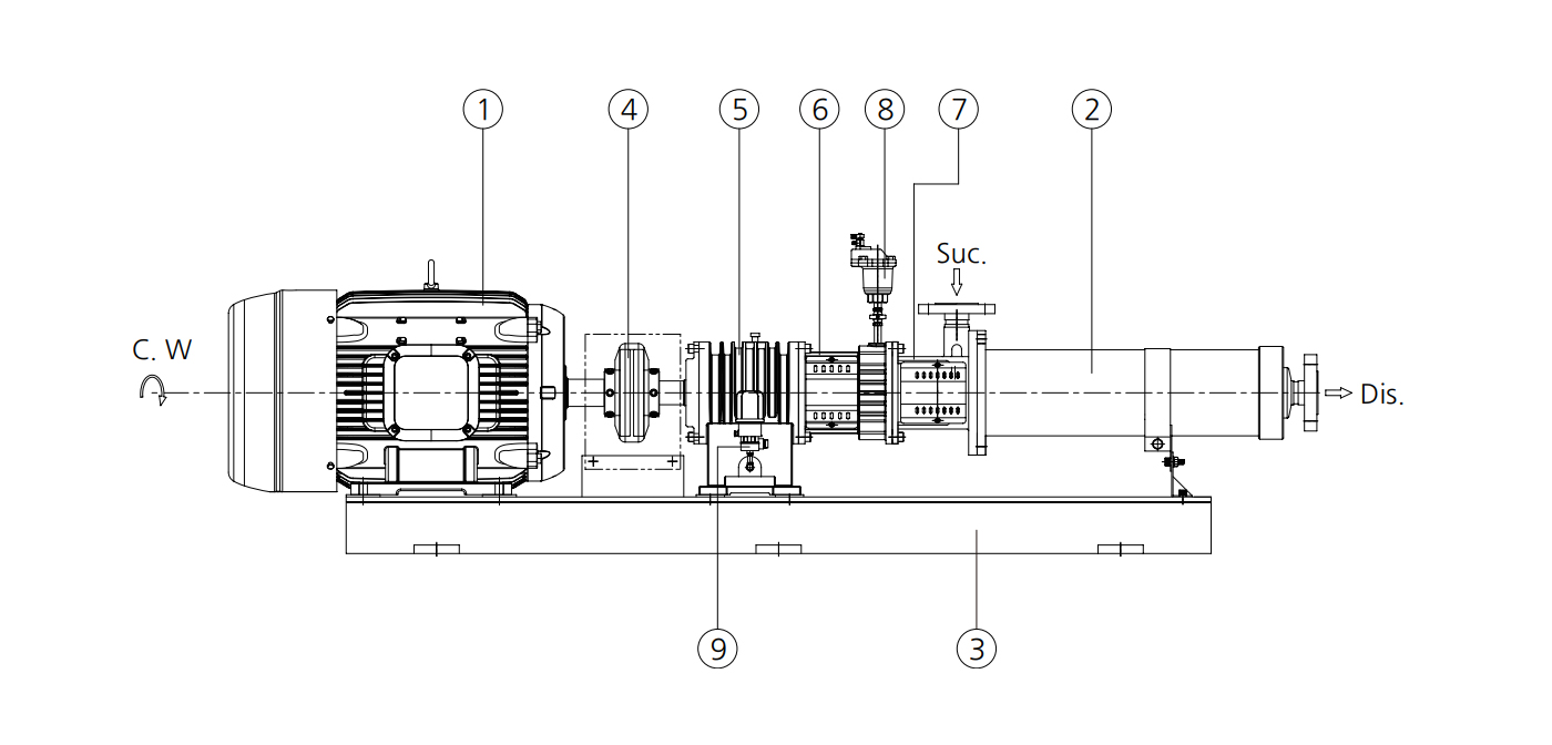 모터는 펌프와 분리되어 부착되므로 어떠한 사양의 비표준 모터도 부착이 가능합니다.