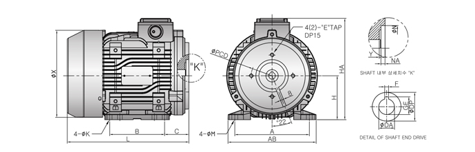 유압용, 삼상 프리미엄 유도전동기 - B34 Horizontal C-Face types